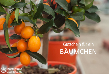 - Gutschein für hochwertiges Bäumchen, verschiedene Baumsorten stehen zur Auswahl